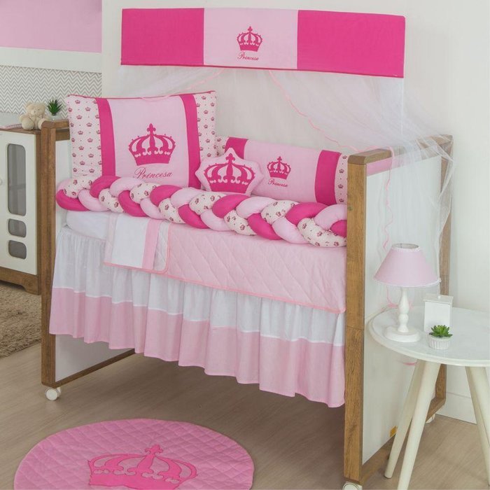Kit Para Berço Bebê Princesa 10 Peças - Rosa