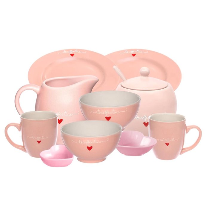 Kit 10 Peças de Porcelana Café da Manhã Lamour Rosa 2 Lugares a Mesa