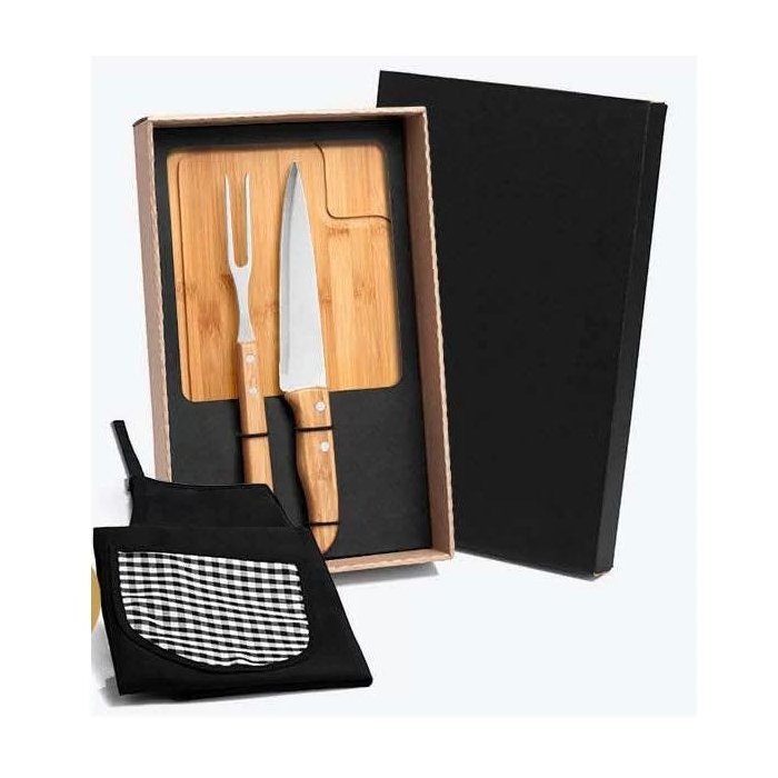 Kit para Churrasco em Bambu / INOX com Avental -4 Peças WELF