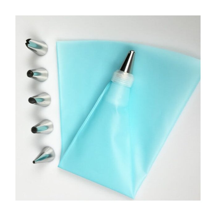 Kit de saco de confeitar de silicone + 6 bicos + adaptador matriz