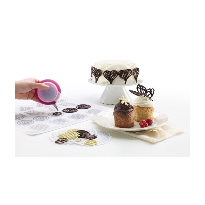 onfeccionado em silicone e papel, o kit da linha Decomat da Lékué é ideal para enfeitar as suas receitas. O kit possui uma assadeira transparente, uma caneta Deco e 4 estênceis laminados com diferentes formatos. Com esse conjunto você poderá criar efeitos decorativos na suas receitas, decorando a sua mesa, além de divertir os seus convidados. O seu uso é pratico, bastante encher a bisnaga com chocolate a gosto, escolher o estênceis mais adequado, colocar a assadeira sobre o papel e começar a desenhar encima da mesma; Quando secar é só retirar o desenho da assadeira. Além disso a caneta e a assadeira suporta baixas e altas temperaturas que variam de -60°C até + 220° C, como fornos, micro-ondas e refrigeradores. Ademais a peça é lavável, podendo ser usada mais de uma vez. Modo de preservação: Produto lavável na maquina ou à mão. Material: silicone silício, o mesmo utilizado nas chupetas e mamadeiras, pelo que não passa qualquer tipo de químico ou cheiro para os alimentos. Totalmente apto para contato com alimentos. Produto Importado Marca Lékué - a Lékué é uma marca de Barcelona especializada em produtos para a inovadores para a cozinha. A Lékué tem já 30 anos de história e exporta para mais de 100 países.