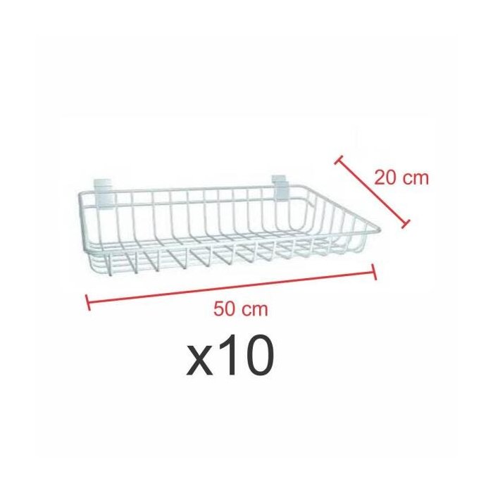kit para expositor com 10 Cestos para painel canaletado 20x50 cm branco