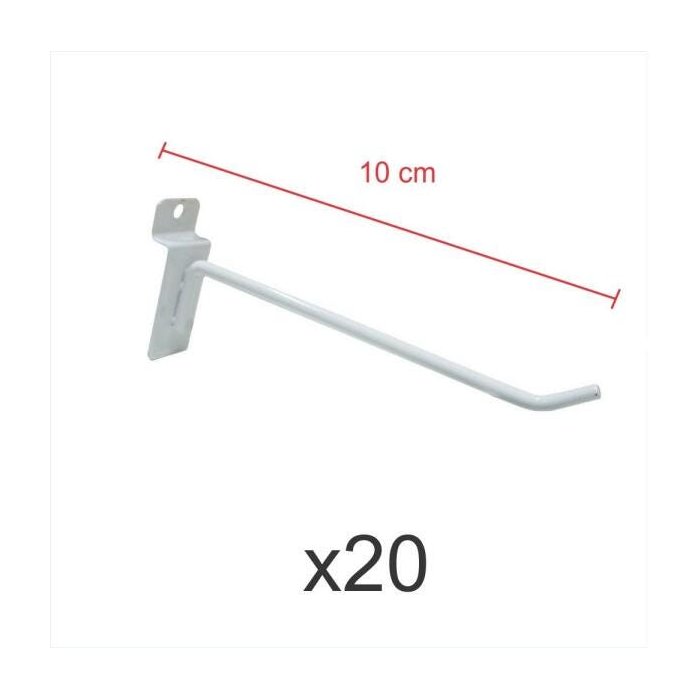 Kit com 20 ganchos 4mm branco de 10 cm para painel canaletado Pintado com pintura eletrostatica epoxy, fabricado em aço