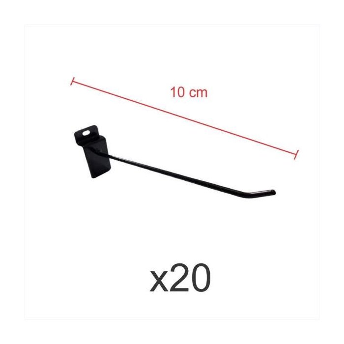 kit para expositor com 20 ganchos 4mm preto de 10 cm para painel canaletado Preto