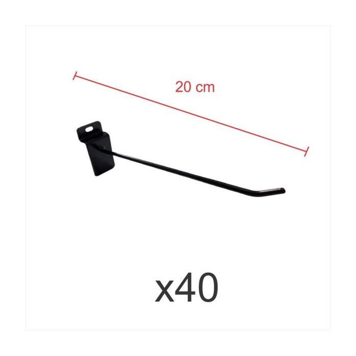 kit para expositor com 40 ganchos 4mm preto de 20 cm para painel canaletado