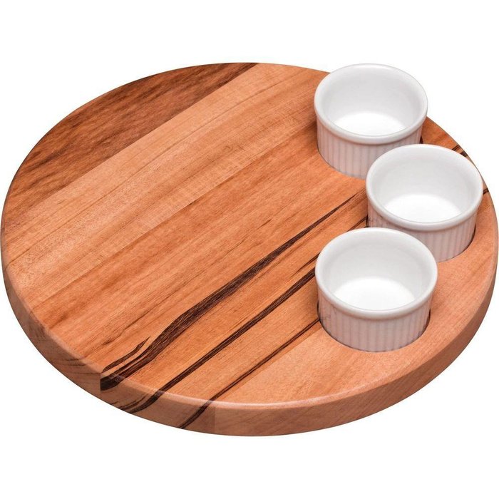 Kit Para Petiscos Tramontina Em Madeira Muiracatiara Com Potes Em Porcelana 4 Peças Tramontina