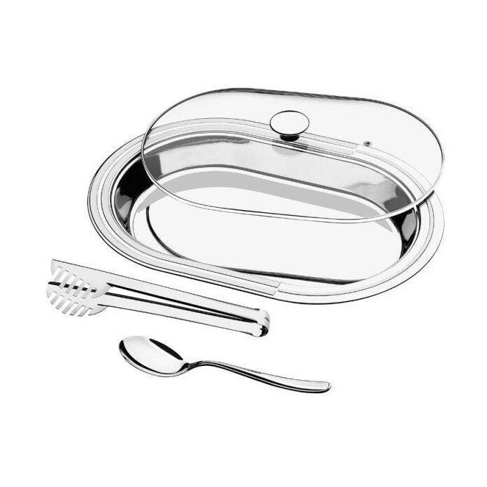 Kit para Servir Tramontina Ciclo Aço Inox com Tampa de Vidro 3 Peças