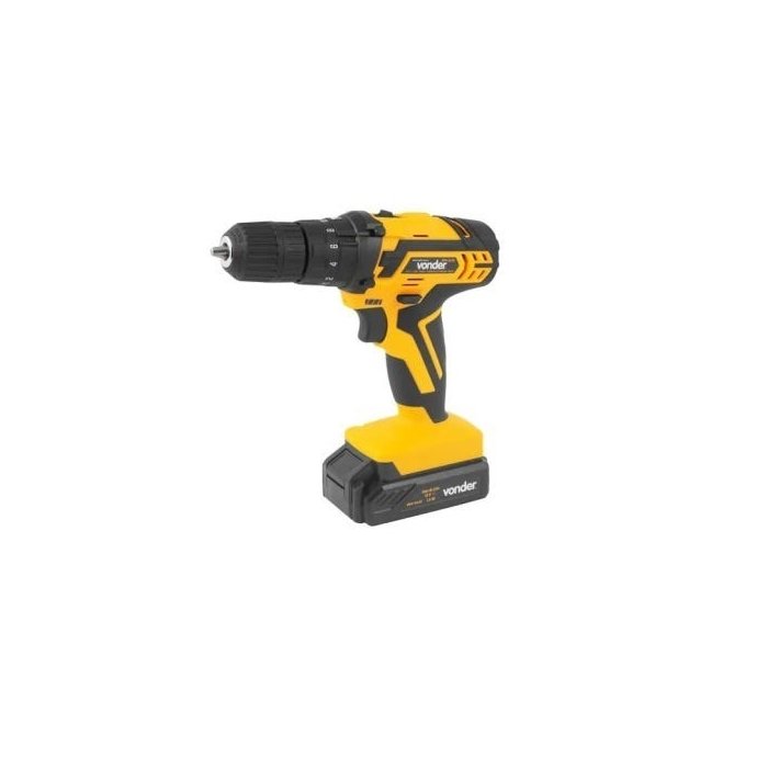 Furadeira Parafusadeira Vonder PFV012I 127V 220V Bivolt Com Impacto Bateria Lítio 18 Níveis de Torque com Maleta - WAP: Você não pode ficar sem ferramentas Elétricas na sua casa ou trabalho e uma das ferramentas mais úteis na hora de realizar trabalhos caseiros ou profissionais é esta Parafusadeira e Furadeira PFV012 Bivolt que é um item totalmente indispensável para se ter. Produzida para perfurar e furar paredes, aço e madeira. A Parafusadeira possui 18 Níveis de Torque, a rotação da Furadeira é de 0 até 650 RPM, podendo aumentar progressivamente conforme a necessidade de perfuração. Outra função desse produto é o sistema reversível que faz a retirada da broca em casos de travamento durante a furação. Indicada para soltar e apertar parafusos de até 6 mm de diâmetro e fazer furos em madeiras, metais e/ou alvenaria. Tempo de carregamento da bateria: 3 a 5 horas.Acompanha 16 acessórios encaixados perfeitamente na maleta, conferindo organização, praticidade e maior vida útil dos acessórios. Possui regulagem para 18 posições de torque e velocidade variável (2 velocidades). Contém 3 funções de operação: parafusadeira, furadeira sem impacto e furadeira com impacto. Possui LED para melhor visibilidade do local de trabalho, indicador de carga da bateria, cabo com revestimento emborrachado proporcionando maior conforto ao operador, bateria de íons de lítio que confere alta eficiência de operação, além de carregador bivolt automático com tensão de entrada de 100 V - 240 V. Especificações Técnicas: - Modelo: Furadeira Parafusadeira Vonder PFV012I 127V 220V Bivolt- Código WAP: FW046356- Bateria: 12 V - 1,3 Ah - Íons de lítio - Capacidade do mandril: 3/8" - 10 mm - Tipo de velocidade: Variável (2 velocidades) - Tipo de mandril: Aperto rápido - Rotação da Furadeira/parafusadeira: 0 - 400/min / 0 - 1.400/min - Sistema de reversão: Reversível - Capacidade máxima de perfuração em aço: 10,0 mm - Capacidade máxima de perfuração em madeira: 20,0 mm - Capacidade de furação no concreto/alvenaria: 10 mm - Impactos por minuto (ipm): 0 - 21.000/min - Tensão do carregador de bateria: 100 V~ - 240 V~ - Bivolt automático - Frequência:50 Hz/60 Hz Nível de vibração (m/s²): 11,5 m/s² - Incerteza k (m/s²):1,5 m/s² - Massa aproximada(Kg):1,0 kg (sem acessórios) Conteúdo da Embalagem:- 01 Furadeira / Parafusadeira- 01 Maleta- 01 Bateria de 12 V- 01 Carregador bivolt automático- 06 Brocas de aço rápido (1,5 mm, 2,5 mm, 3,0 mm, 4,0 mm, 5,0 mm e 6,0 mm)- 06 Bits (2 fendas (5 mm e 6 mm)- 02 Phillips (PH1 e PH2)- 02 Pozidrive (PZ1 e PZ2))- 01 Soquete magnético encaixe de 1/4".- ManualCor: Amarelo - Voltagem: BIVOLTGarantia 12 meses contra defeitos de fábrica.
