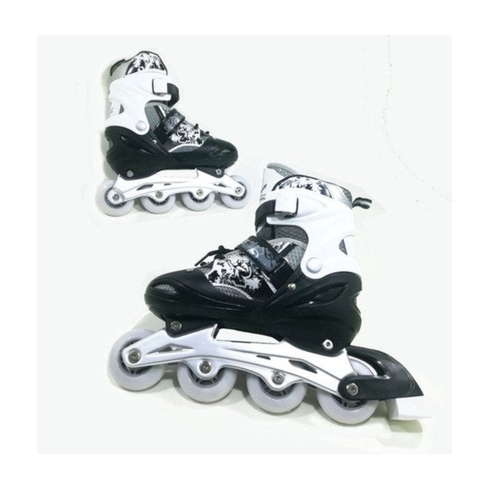 Patins rollers Tigre Veloz estampado com 4 rodas em linha com kit de proteção.