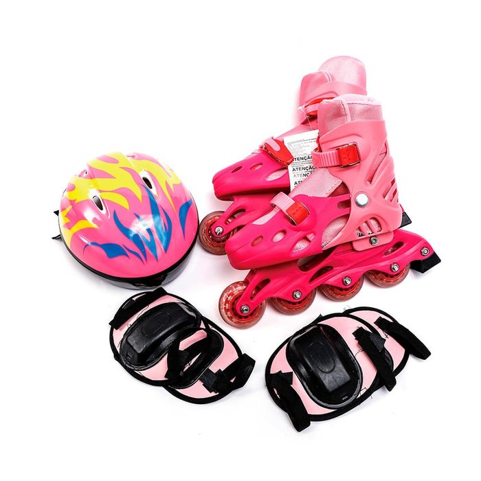 | Mais Informações | Acompanha 01 capacete, um par de cotoveleiras e um par de joelheiras. Peso suportado: 60kg. |