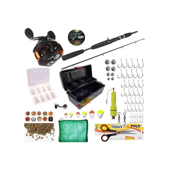 Este Kit de pesca foi montado pensando em oferecer a você pescador um conjunto básico de itens. Acompanha maleta e estojo para organizar suas tralhas de pesca e oferecer novas opções para a captura do peixe, garantindo sua diversão. Kit de pesca completo montado para auxiliar o amigo pescador que está iniciando, temos um ideal de todo o material de pesca básico mas ao mesmo tempo completo com os artigos de pesca que mais se utiliza seja em rios, represas ou pesqueiros. Este Kit de Pesca básica vem o necessário para já sair pescando, com esta Caixa de pesca você terá uma grande diversão e o início de sua tralha de pesca para poder se divertir e pegar muitos peixes. Assim que vamos pescando com este kit de pesca básico e nos aprimoramos conseguimos ir melhorando nossos artigos de pesca e temos tudo o necessário para que você monte e aumente ainda mais sua tralha de pesca. Temos itens do básico ao profissional e uma experiência dividida por vários pescadores de muitas partes do país. Este kit de pesca e outros kits básicos ou completos que temos na nossa loja de pesca é diversão garantida.