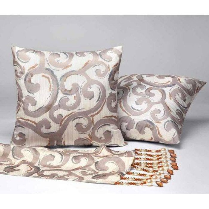 Kit Peseira + Almofadas Imperial Queen Tafetá com Pedraria 03 Peças - Areia