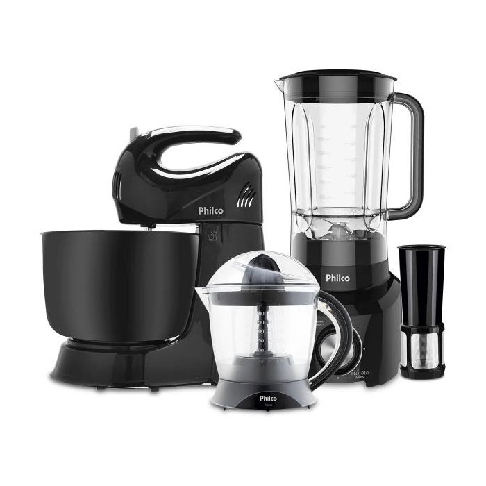 • Conjunto de facas integradas ao copo que impede vazamentos;