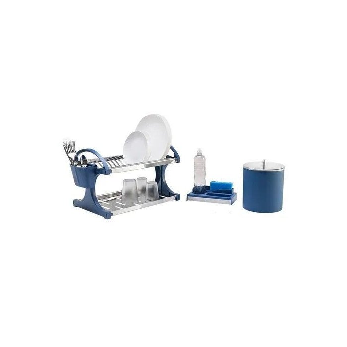 - 03 Peças, sendo elas: - 01 Escorredor para 16 pratos com suporte para talheres - 01 Lixeira 5,4L - 01 Organizador de pia