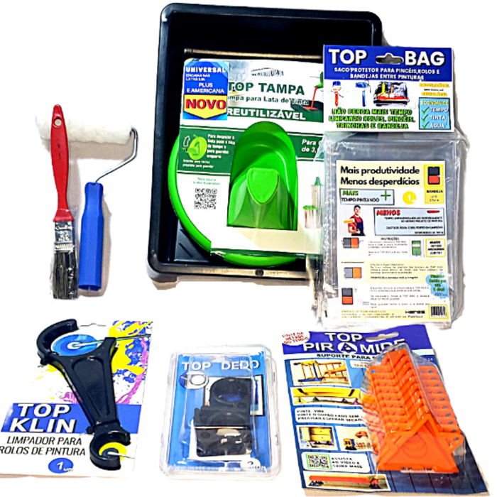 KIT PINTURA - 7 itens - Rolo bandeja trincha - TOP TAMPA - PIRÂMIDE e KLIN - Tampa lata tinta