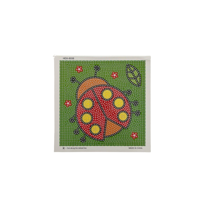 Cada kit vem com 1 cartela com desenho (medida 15 x 15 cm) acompanha 1 aplicador, 1 goma, saquinhos com as pedrinhas separadas por cor, 1 bandeja de plástico e um porta retrato.