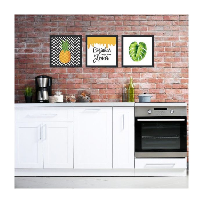 Kit com 3 quadros decorativos em moldura laqueada tipo caixa alta em madeira, cada quadro com tamanho de 24 cm x 24 cm.Tamanho total: 78 cm (Largura) X 24 cm (altura), considerando 3 cm de espaçamento entre os quadros.Os quadros decorativos são uma ótima opção para você que procura preencher sua parede com cores, arte e personalidade. Temos os mais variados modelos impressos em combinações elaboradas por designers, e que são de muito fácil instalação. Além disso são versáteis, sendo adequados para a decoração de qualquer ambiente, desde estabelecimentos comerciais como escritórios, restaurantes, barbearias e bares até os espaços de sua casa como quartos, sala, cozinha e área de lazer. Aproveite e escolha o modelo que mais combina com você para transformar seu ambiente e deixá-lo mais harmonioso e aconchegante. CARACTERÍSTICAS DO PRODUTO: Moldura em madeira maciça de reflorestamentoImpressão digital de alta qualidade em Papel Couché de 170 g, considerado um dos melhores papéis para impressão, sendo superior ao papel adesivo vinil*Não possui vidro COMO FIXAR? A fixação pode ser feita com um preguinho que já está incluído no produto, ou com fita dupla face.COMO FAÇO A LIMPEZA?Indicamos ser realizada com um pano seco macio. Não utilize produtos contendo álcool ou com outros componentes químicos.COMO É A EMBALAGEM?Os produtos são muito bem embalados com plástico bolha ou manta de espuma. Além disso, as embalagens vão com aviso de CUIDADO FRÁGIL para que haja mais atenção e zelo da equipe durante o transporte.COMPRE COM QUEM ESTÁ HÁ MAIS DE 20 ANOS NO MERCADO OFERECENDO PRODUTOS COM PREÇOS ACESSÍVEISDECORE, INOVE, PRESENTEIE QUEM VOCÊ AMA!