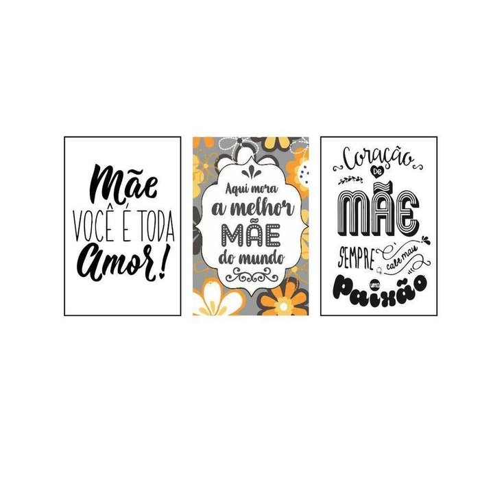 KIT 3 Plaquinhas Decorativas Dia das Mães Placas Decorativas Acompanha 3 unidades Cada Plaquinha mede 20cmx30cm Plaquinhas em MDF de 3mm Impressão em alta resolução e livre de imperfeições Tamanho total das 3 peças juntas 60x30 Imagens impressas em material vinil brilho altamente durável Fique tranquilo, sua imagem não corre o risco de desbotar Caso pegue poeira e só passar um pano úmido para limpar O valor anunciado é para as 3 peças O produto pode ocorrer de ter uma leve diferença de tom na cor da que está na tela do seu computador ou celular Composições podem ser utilizadas em salas, cozinhas, varandas, quartos ou qualquer ambiente que você queira deixar