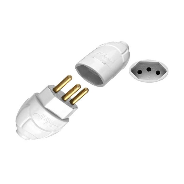Kit Plugue Macho 2p+t 20A + Tomada Fêmea 2p+t 20A Branco - 30 Plug Macho + 30 Tomada Fêmea