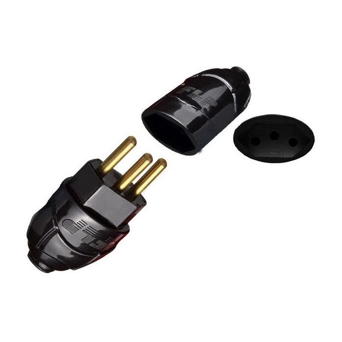 Kit Plugue Macho 2p+t 20A + Tomada Fêmea 2p+t 20A Preto - 45 Plug Macho + 45 Tomada Fêmea