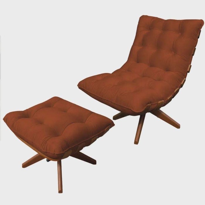 de ser peças de alto requinte, sofisticação e bom gosto. A Poltrona Costela com puff base giratória de madeira dá um charme