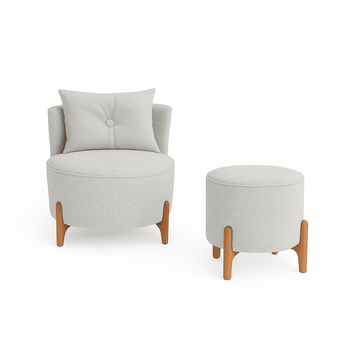 Kit Poltrona e Puff Luna Decorativa Curvo Orgânico Boucle Cinza Claro - Montanaris Decor