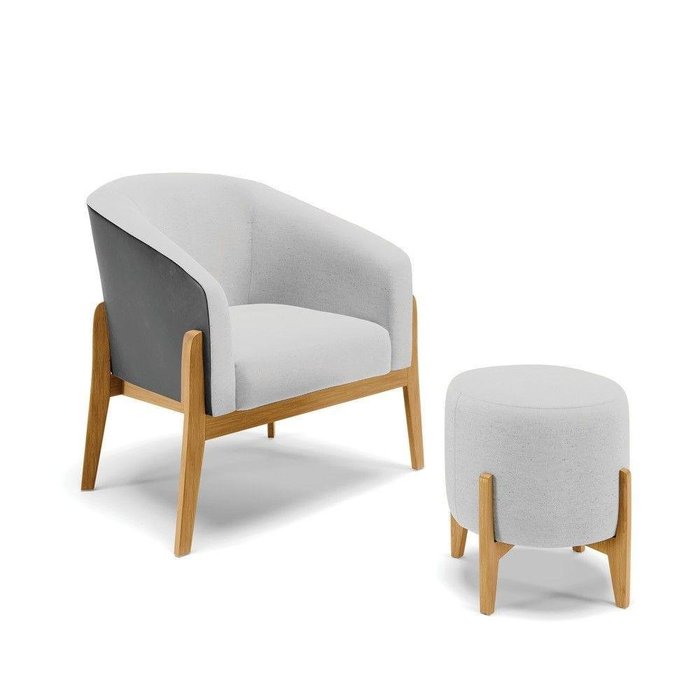 Kit 01 Poltrona E 01 Puff Stella Corano Preto Com Linho Cinza A05 Base Madeira Castanho - D'rossi