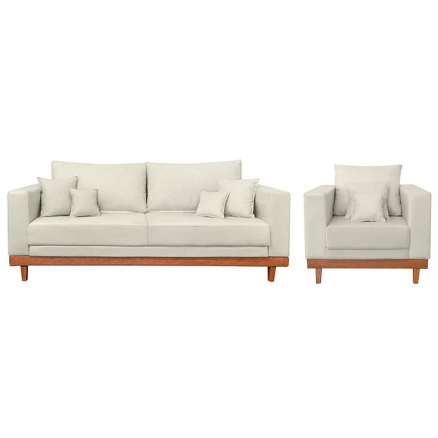 Você receberá 2 volumes, ou seja, um Kit Poltrona Living + Sofá 2 Lugares com Base Madeira Suede