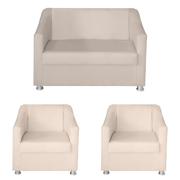 Kit Poltrona Namoradeira e 2 Poltronas Decorativa 68 cm Tilla Bege - Mafer