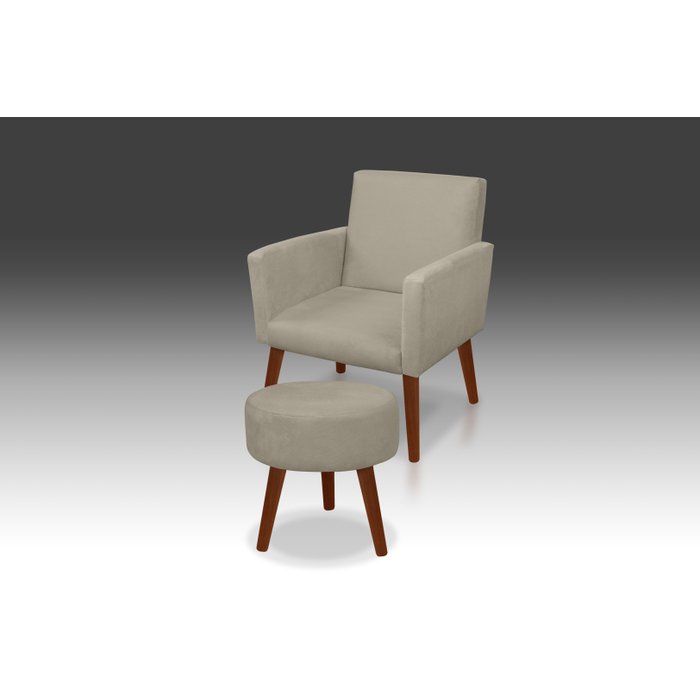 Kit Poltrona Nina + Puff Redondo Dany Decorativo Suede Bege - Pandora Decor Bege