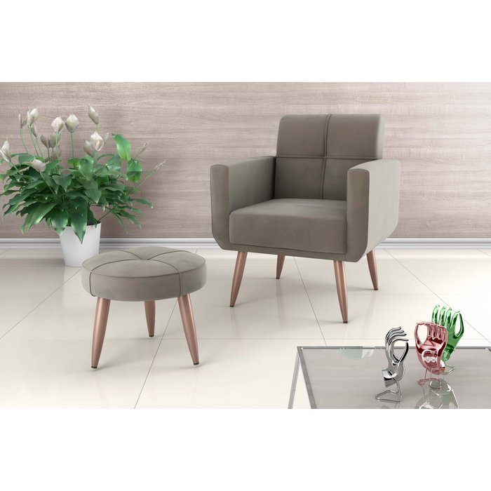 Kit Poltrona +puff Havana Veludo Cappuccino E434 - Matrix