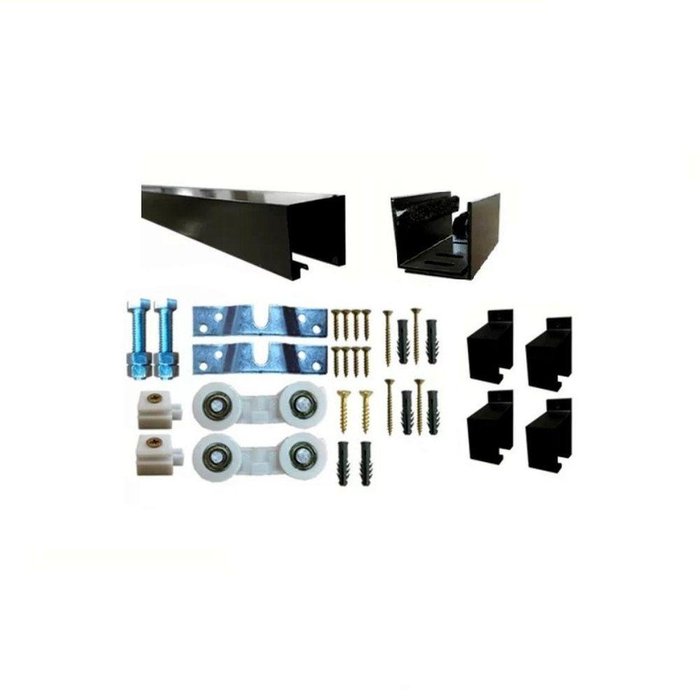 Kit Porta Correr Roldanas Trilho Preto 1,60M -