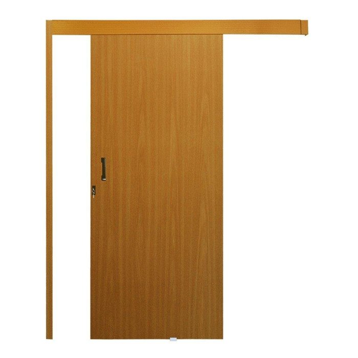 Kit Porta de Correr Madeira Lisa MGM Mogno Direita - 215x70