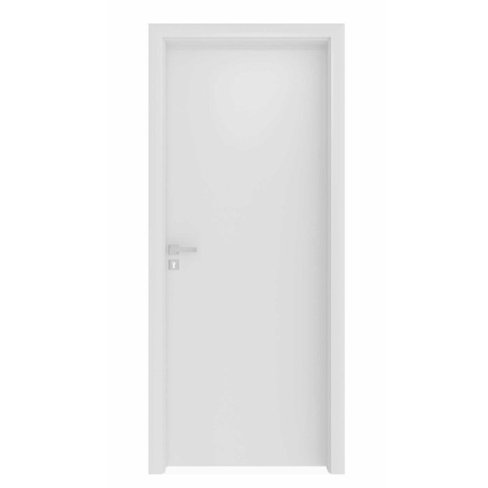 Porta semissólida, com requadro e miolo sarrafeado em pinus seco em estufa, com 2 capas de HDF 3mm.Acabamento com pintura esmalte Branco UV, bordas com fita PVC - Plastificada individualmente. Conjunto de batentes em MDF Hidrófugo, com canal para regulagem. Acabamento recoberto polímeros de poliéster térmico (PET), 330g/m2 cola PUR "Com Impermeabilizante na base". Conjunto de alizares em MDF Hidrófugo, com regulagem 2 lados,(haste de 55mm), um lado encaixe ,acabamento recoberto polímeros de poliéster térmico (PET), 330g/m2 cola PUR.