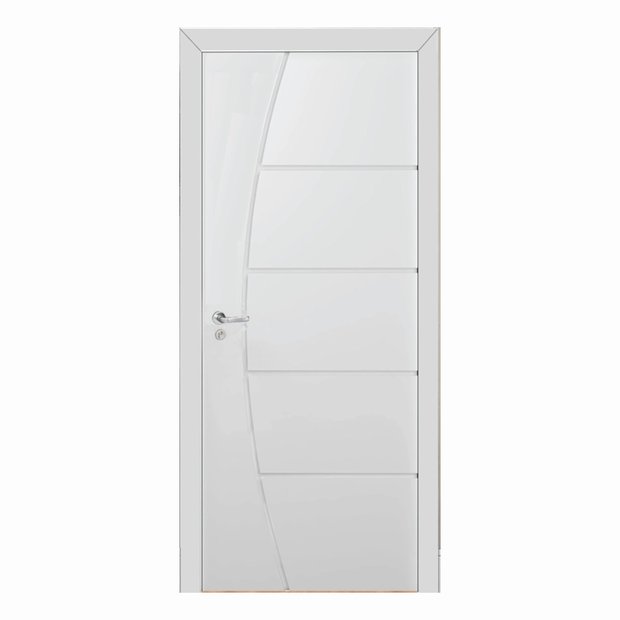 Kit Porta de Madeira 210x80cm Frisada Laqueada Moldufama Abertura Esquerda Branco