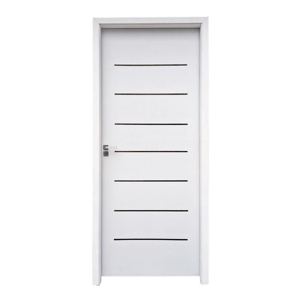 Porta Cristal Primer com estrutura de madeira de reflorestamento e colmeia Honeycomb, leve e resistente. Acabamento em primer branco para fácil pintura. Inclui batente em pinus, fechadura roseta Modena em aço escovado e dois jogos de guarnições. Ideal para personalização, com estilo e sustentabilidade.
