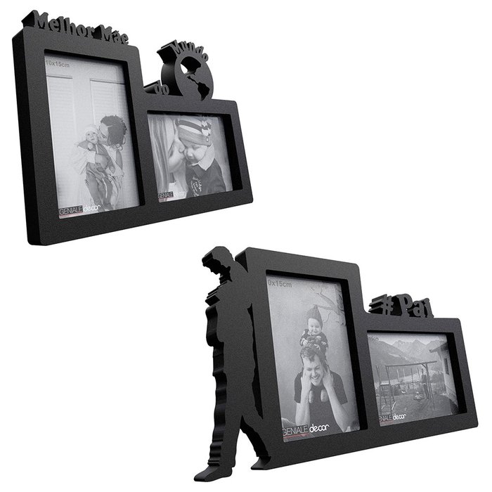 Kit Porta Foto 10X15 Mãe Incrivel E Hashtag Pai Para Familia:Preto Preto