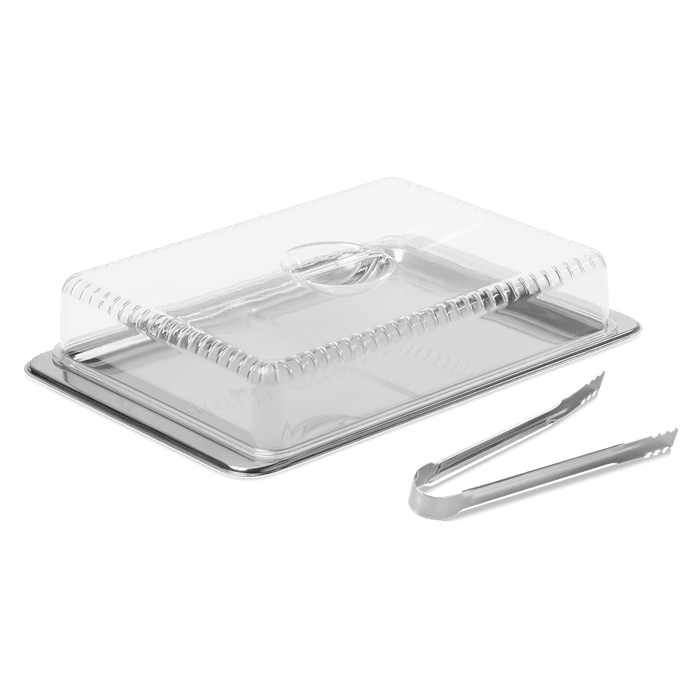 Queijos e embutidos com qualidade e frescor com Kit Porta Frios Brinox 3 peças aço inox da linha Átina. Pode ser empilhado ocupando melhor os espaços na geladeira e na mesa. Produto com alta resistência e durabilidade, mantém os frios sempre na temperatura ideal e livre de contaminações quando dentro da data de validade. O Kit Porto Frios Brinox é composto por Bandeja cm 27cm por 18,5cm, cúpula de 23 cm por 18 cm por 5,8cm e pinça pra frios de 16,5 cm por 1,5cm. A Bandeja é produzida em aço inoxidável polido, a Cúpula em acrílico e a Pinça em aço inoxidável. O produto pode ser armazenado em geladeiras e bancadas. Para manter seus produtos de aço inox sempre brilhando, lave-os com esponja macia e sabão ou detergente neutro. Produtos abrasivos como palha de aço e outros, poderão riscar ou prejudicar o brilho. Sempre seque o seu kit após lavar.