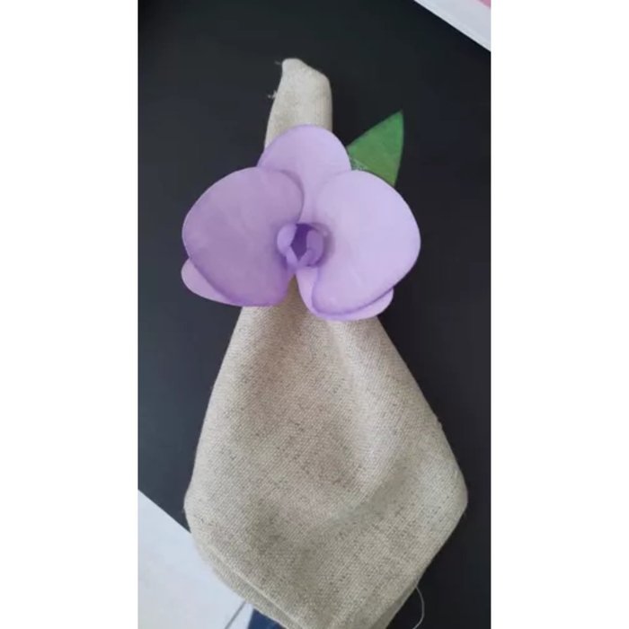 Kit Porta Guardanapo Flor Orquídea Com 6 Peças Mesa Posta:Liso/Violeta