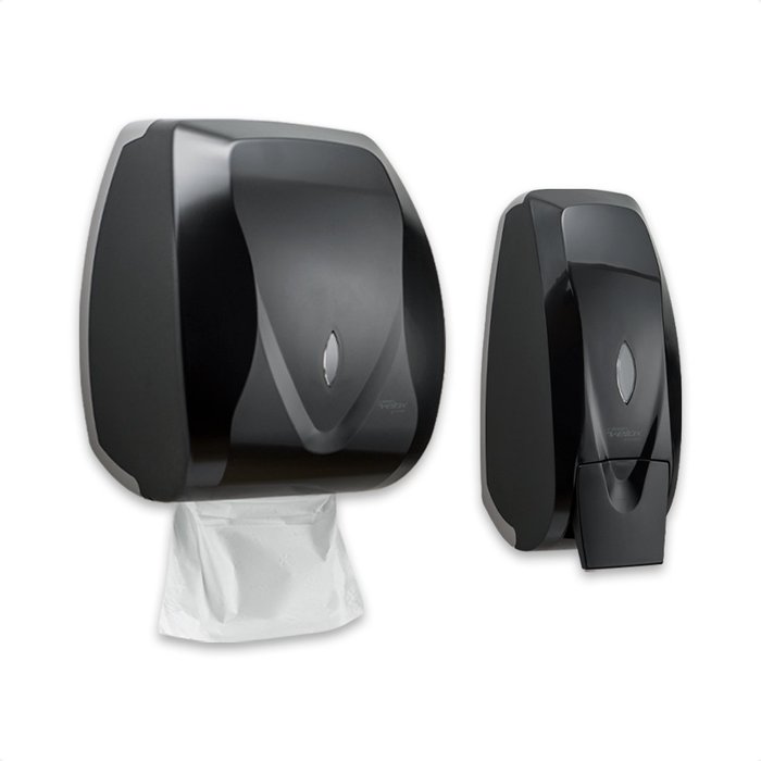 Kit Porta Papel Toalha E Saboneteira Dispenser Banheiro Preto