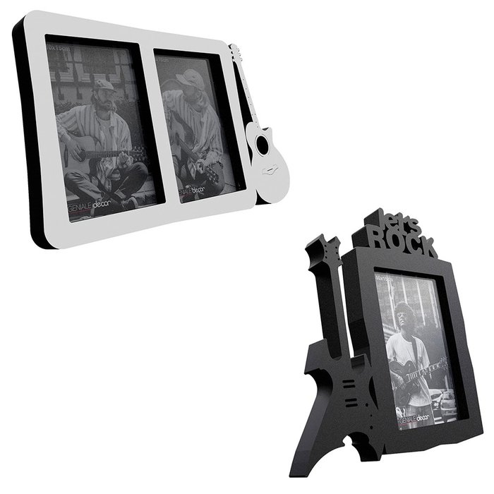Kit Porta Retrato Presente Criativo Para Musico Rockeiro:Branco e Preto