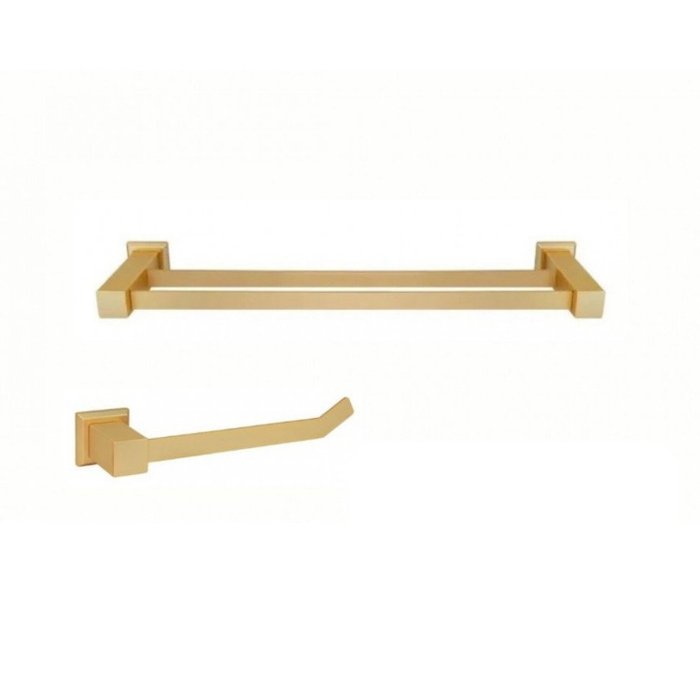 Kit Porta Toalha de Banho Dupla de 51cm e Porta Toalha de Rosto Puro Fosco Ducon Metais Ouro Fosco