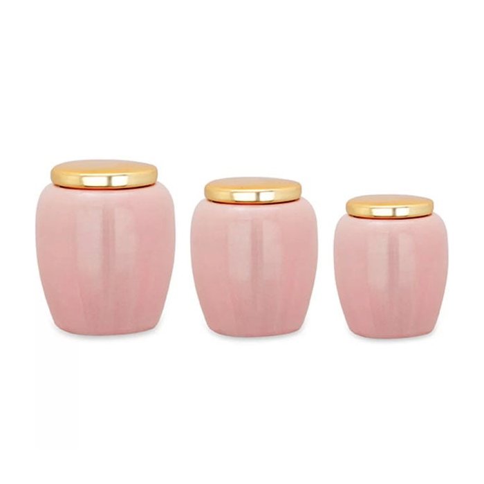 Kit Pote Rosa e Dourado em Cerâmica 3 Pcs 8945 Mart