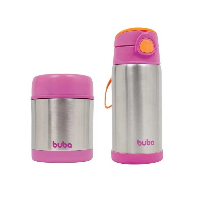 Kit Pote Termico + Garrafa Térmica Rosa Buba Rosa
