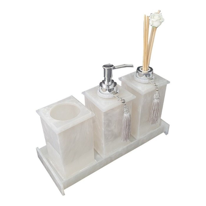 Kit Potes Em Acrílico Para Banheiro 4 Pçs Luxo K15pe4 Pérola