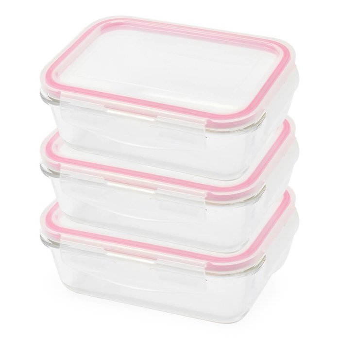 Kit Potes Herméticos De Vidro Marmita M Tampa Trava 3 Peças