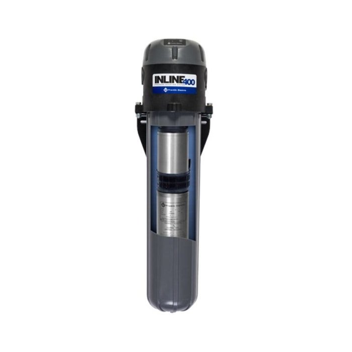 // Aplicações: Sistema de pressurização residencial, Predial, Redes hidráulicas em geral // Características Gerais: Constituído por uma bomba e um motor submerso Franklin Electric; Sistema de controle automático (sensor de pressão e fluxostato); Sucção e recalque de 1" BSP; Voltagem única: 115 V ou 230 V; Operação silenciosa; Instalação na posição vertical ou horizontal; Temperatura máxima do líquido bombeado: 49 ºC // Proteções: Sobretensão; Subtensão; Funcionamento a seco; Sobreaquecimento // Composição do Kit: O Kit do Sistema de Pressurização Inline 400 é composto pelos seguintes itens: Inline 400; Tanque de 8 Litros; Manômetro.