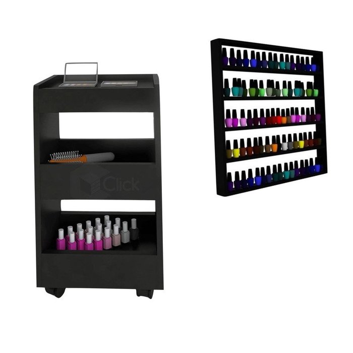 Kit Preto Carrinho Porta Esmalte Auxiliar + Prateleira Expositora - AJL AJL STORE CARRINHO AUXILIAR