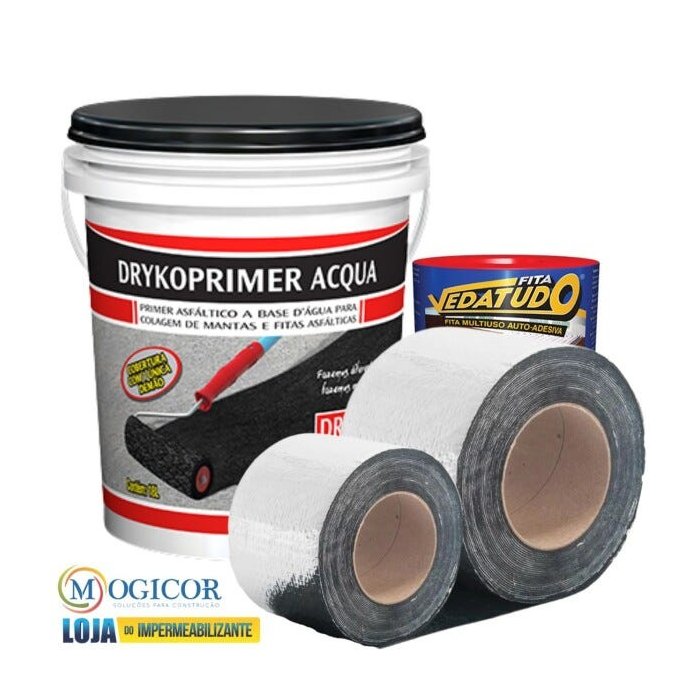 Kit Primer + 2 Mantas Asfálticas 20cm X 10m - 1 Primer + 2 Fitas Asfálticas 20cm x 10m