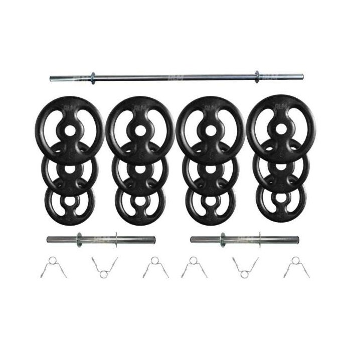 Kit Profissional 40 Kg de Anilhas + 2 Barras de 40cm + Barra de 160cm